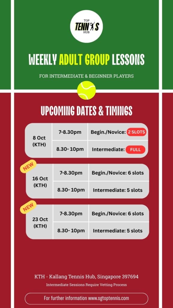 This isn’t just another tennis class — it’s a lesson led by one of Singapore’s most-followed tennis coaches on social media. With over 20,000+ followers, Top Tennis Hub has built a reputation for clear, engaging, and effective tennis instruction. If you’ve ever seen our videos and thought, “I wish I could learn like that in person,” this is your chance..