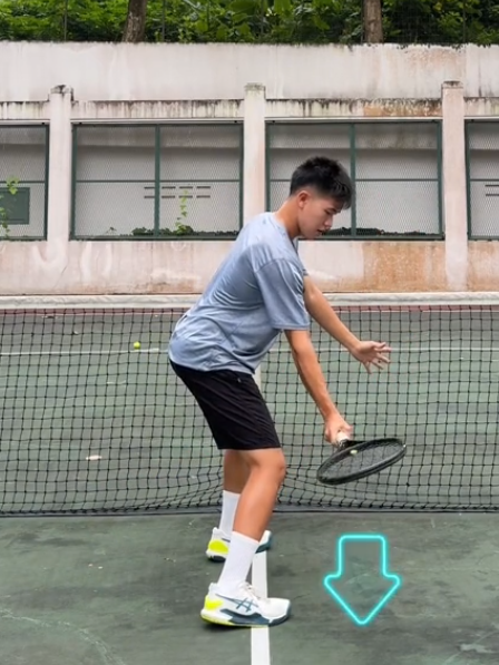 Step 3: Let the racket fall naturally, with its strings pointing down towards the floor.